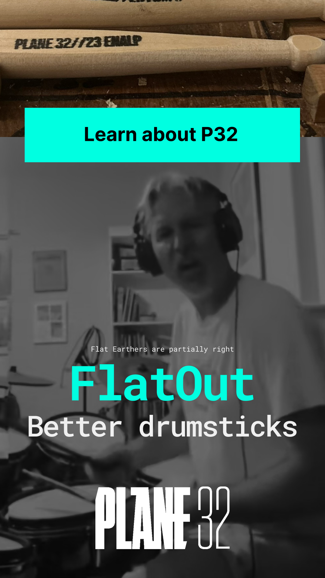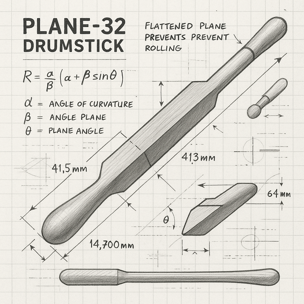 Plane32 drumsticks feature a continuous longitudinal plane that prevents roll, boosts control, and keeps your flow locked in. Zero gimmicks. Pure physics.
